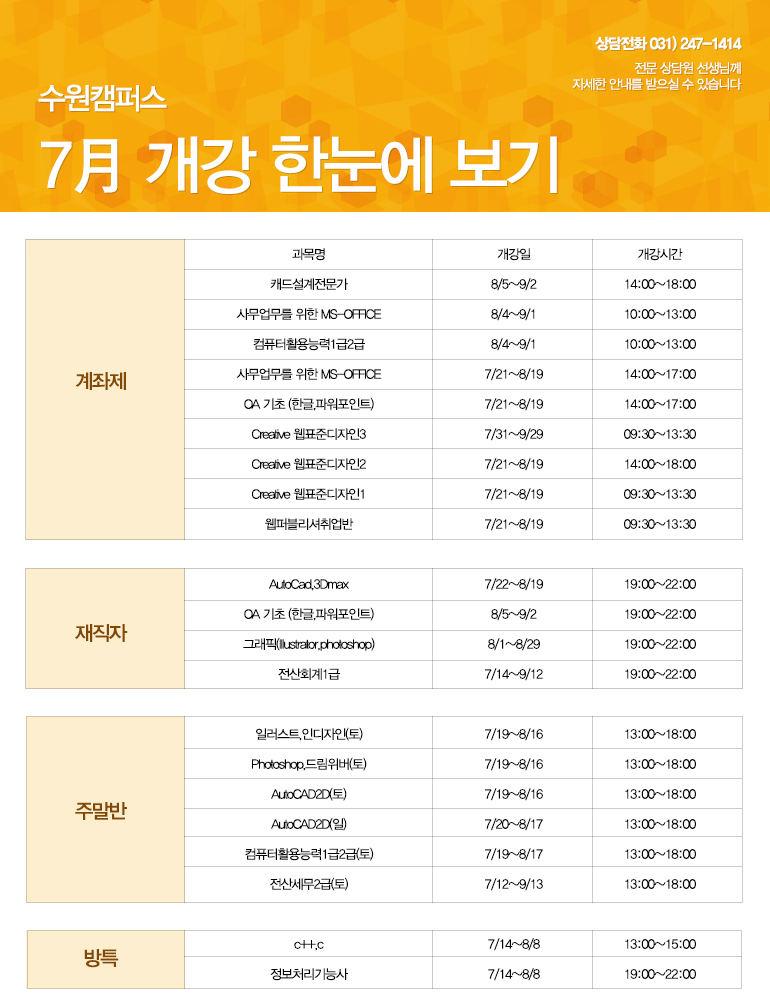 7월 개강 한눈에 보기