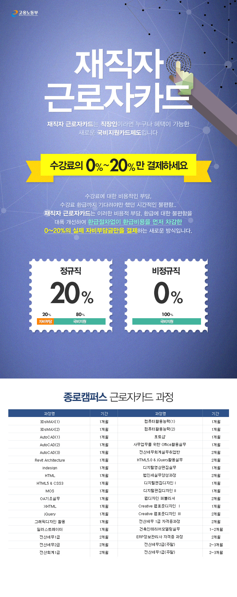 수강료 걱정없는 <재직자 근로자카드> 과정안내