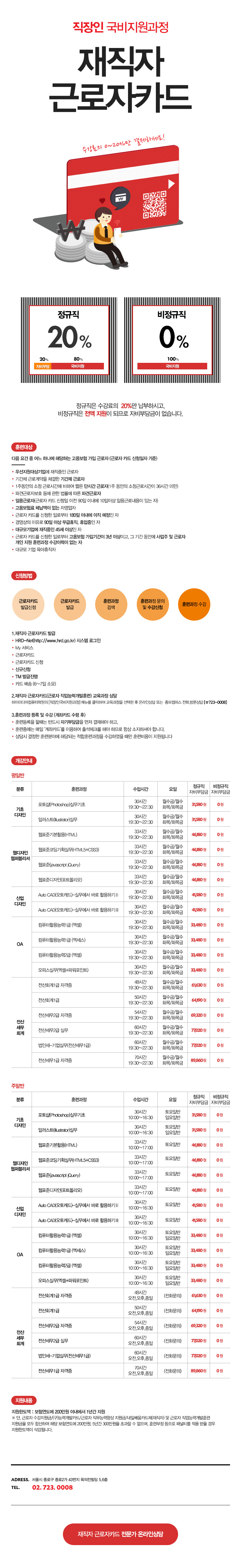 [종로점] 재직자근로자카드 수강료 안내